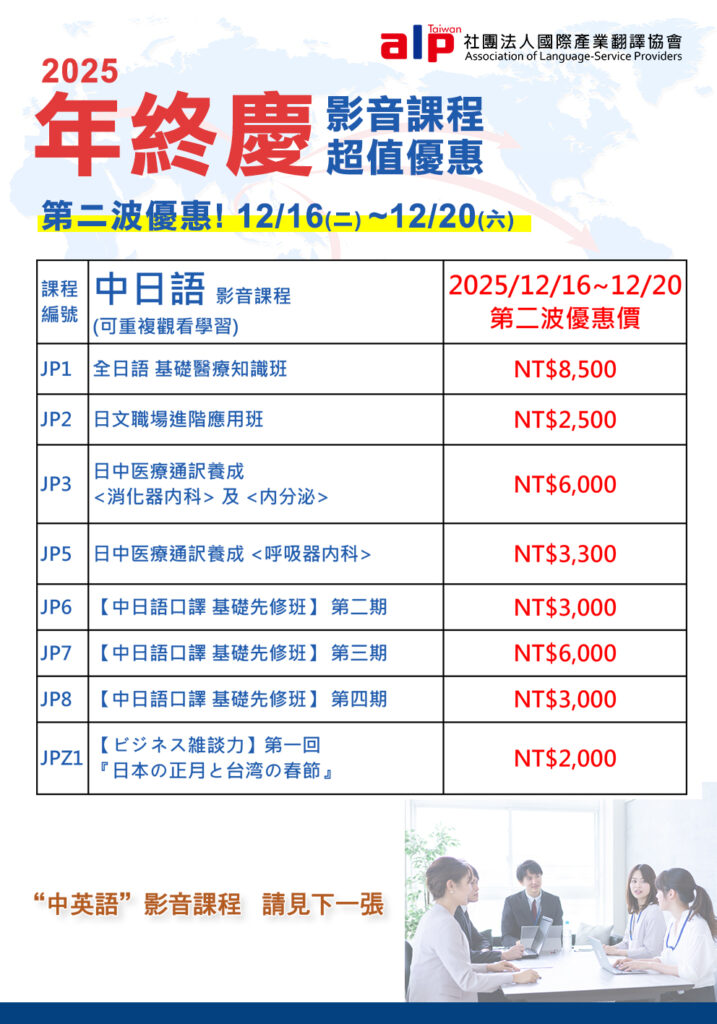 【中日語口譯 基礎先修班】第四期